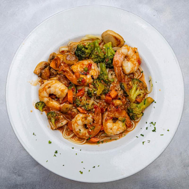 5 jumbo shrimp served with a choice of pasta or vegetables in a spicy marinara sauce