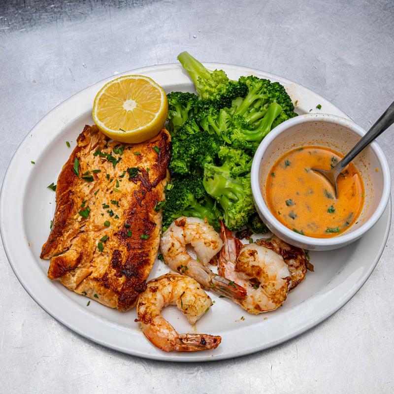 Jumbo shrimp sauteed in lemon butter and topped with grated Romano